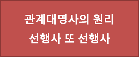 이렇게 관계대명사는 2개의 문장에서 반복되는 명사를 사용하여 하나는 선행사로 하나는 관계대명사로 사용하여, 2개의 문장을 1개의 문장으로 연결하는 원리입니다. 이 것 알고 나면 다른 용어들은 전부 사후 분석에 필요한 문법적 용어일 뿐입니다. 도움이 되셨다면 광고 클릭 많이 부탁드립니다.