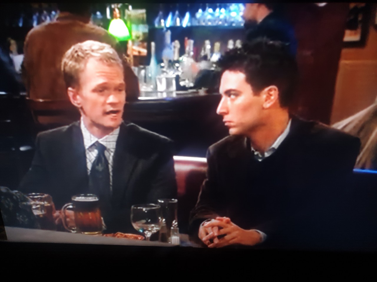 (몇일 뒤, 바에서 다 같이 다시 만난 로빈과 테드 일동들)